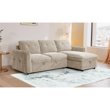 Milano Corner Sofa Bed with Storage (Available in Chenille Beige, Dark Grey or Teal)