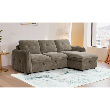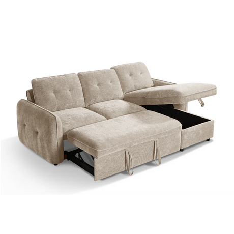 Samara Corner Sofa Bed with Storage (Available in Chenille Grey, Brown, Beige or Green)