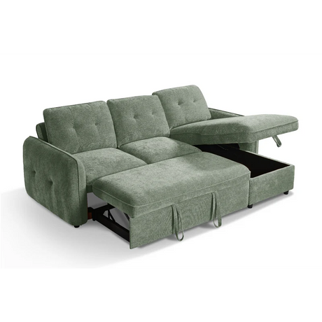 Naples Corner Sofa Bed with Storage (Available in Chenille Grey, Blue, Beige or Green)