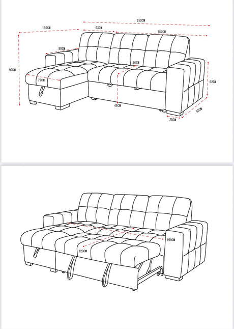 Stella Corner Storage Sofa Bed (Available in Velvet Cream, Grey or Mocha)