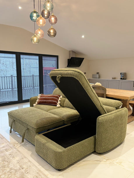 Naples Corner Sofa Bed with Storage (Available in Chenille Grey, Blue, Beige or Green)