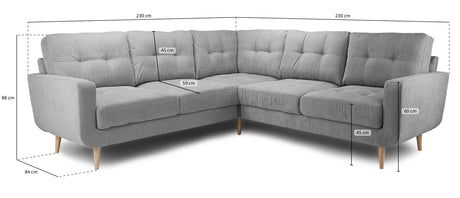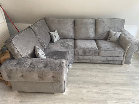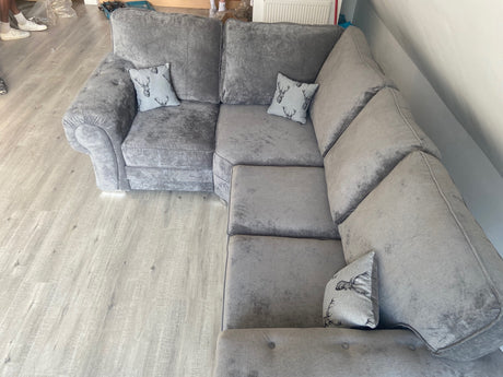 Charlotte Small Corner Full Back Sofa (Available in Chenille Grey or Black)