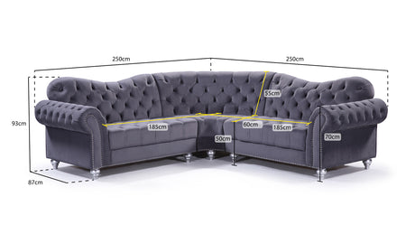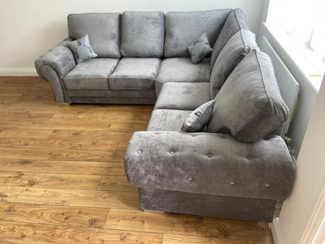 Charlotte Large Corner Full Back Sofa (Available in Chenille Grey or Black)