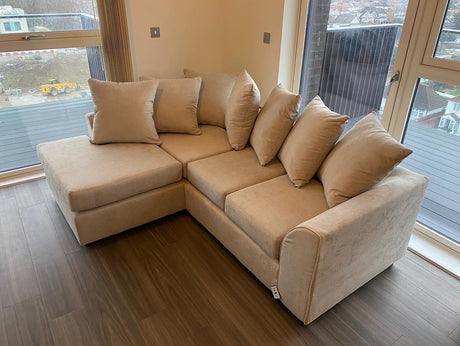 Charlotte Small Corner Scatter Back Sofa (Available in Chenille Grey or Black)